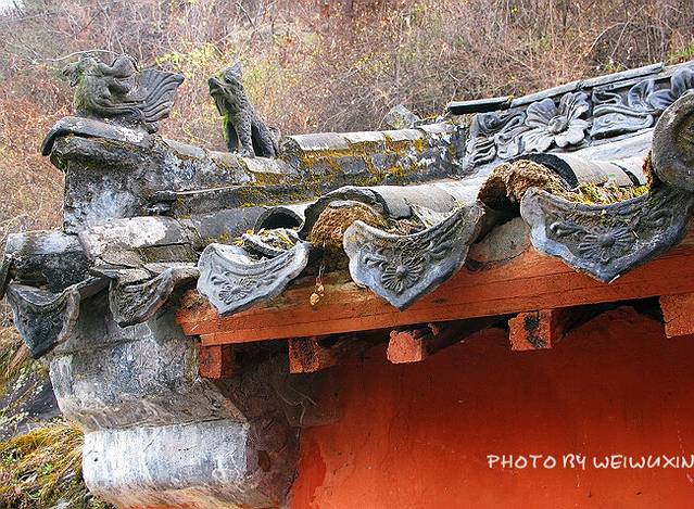 屋檐,瓦当,上面长出青苔和草末。我喜欢这样的古式建筑,有一种经历风雨的感觉
