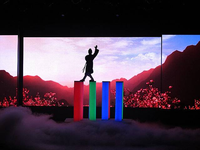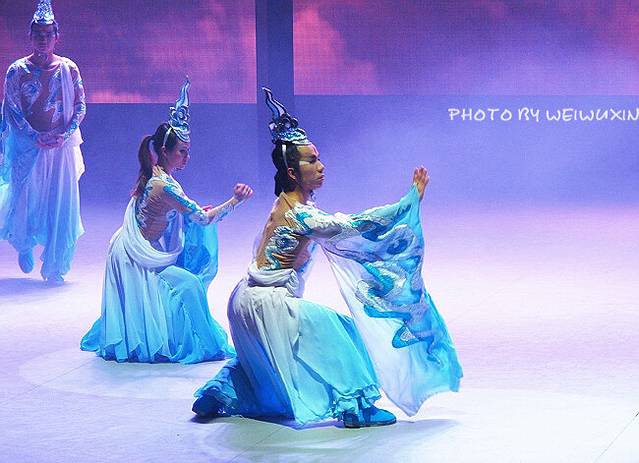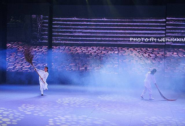 整场演出的节目涵盖了舞蹈、功夫、歌唱、朗诵、气功表演等各个类别,配合后面的多媒体影像,还是颇有看头。