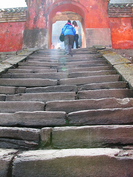武当山的这些宫殿、山门前的台阶都特别陡峭,而且石条修建得都不算太平整,或许这些都是600年前的“原件”,上面都是岁月的痕迹。