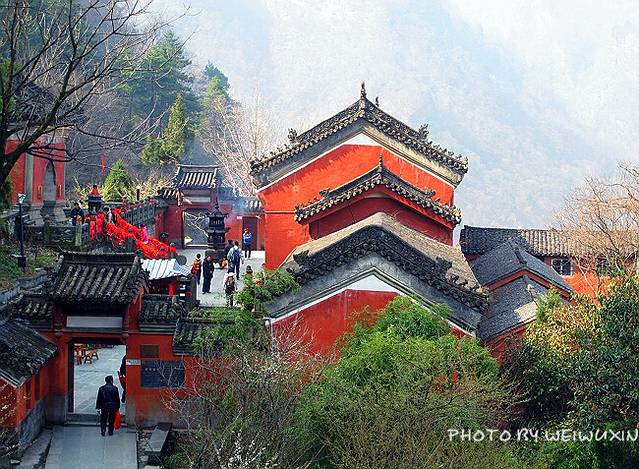 武当的建筑都是这样,红墙、青瓦,衬着绿树,如此醒目,又格外肃穆。