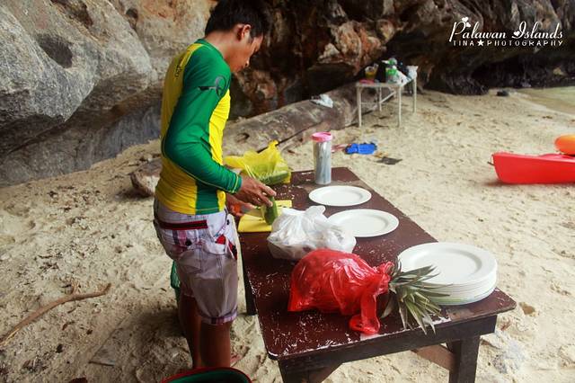 在水里泡了一上午,船夫带我们去午餐。他们辛勤的开始准备着,而我们只能在海边拍照等待了。