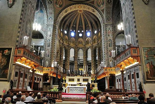 下山以后过了桥就是建于1187年的Santa Maria Matricolare大教堂,它结合了罗马式建筑和哥特式建筑两种风格,大教堂因文艺复兴后期伟大画家提香的作品《玛利亚升天》而出名。