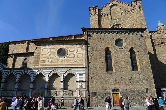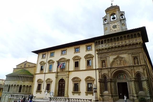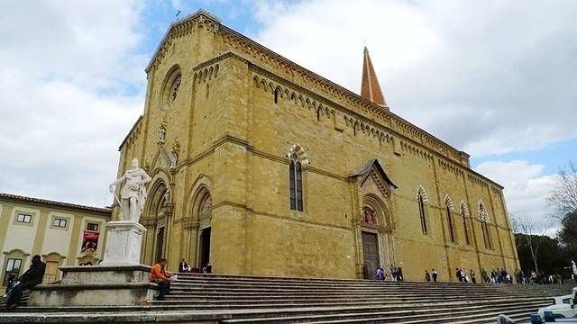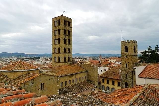 教堂在倾斜的大广场边上,这里是阿雷佐市的地标。这座辉煌的钟楼,又名“百孔塔楼”,建于1330年,它的名字来自于穿梭其中的诸多圆拱。