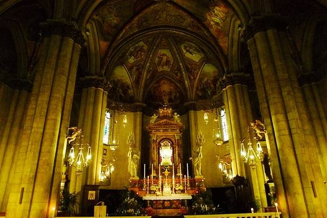 教堂内部的灯光色调打造出一种金碧辉煌的感觉,实际上却并没有那么奢华。