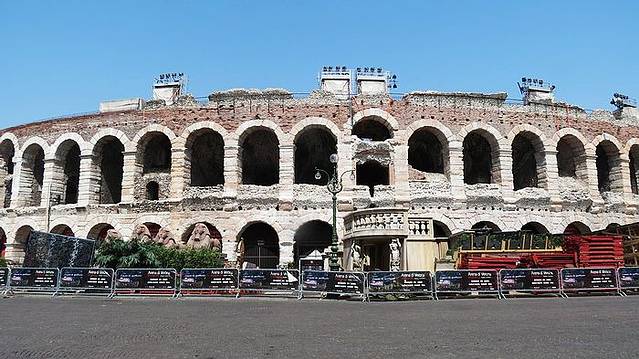 维罗纳最雄伟的建筑是无疑是公元1世纪建造的竞技场,它同时也是罗马式的圆形露天剧场,它是世界上现存的第三大圆形竞技场,每年夏天都举行歌剧演出,吸引了众多的歌剧迷。