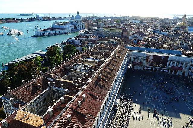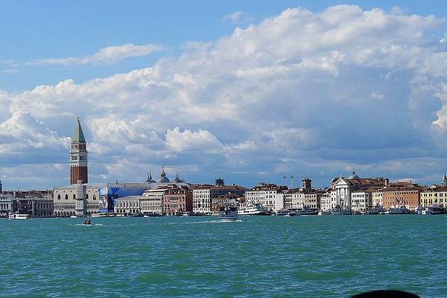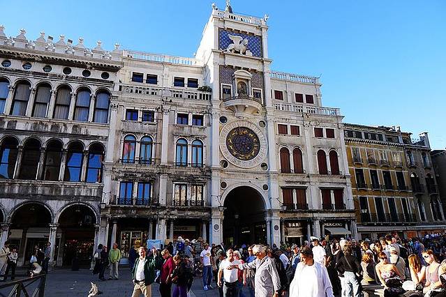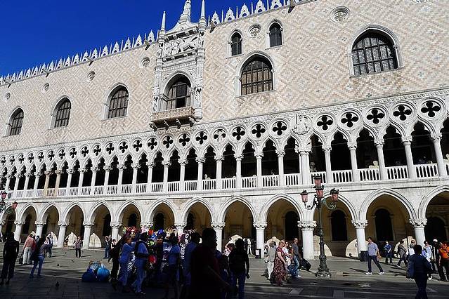 白天再逛主岛,展现在眼前的就是一幅破败景象:斑斑驳驳的房屋外墙,到处裸露随意拉伸的电线,再加上暗淡的色调,第一眼真不能让我喜欢上这个城市。意大利似乎就是这样,要慢慢品味才能发现它的美。于是我们跟随人流来到圣马可广场。首先映入眼帘的当然是总督宫了,我觉得建于16世纪中叶的总督宫应该是拍摄圣马可大教堂的最佳场所,可惜我去的时候没有找到入口。