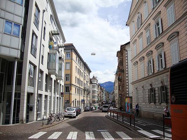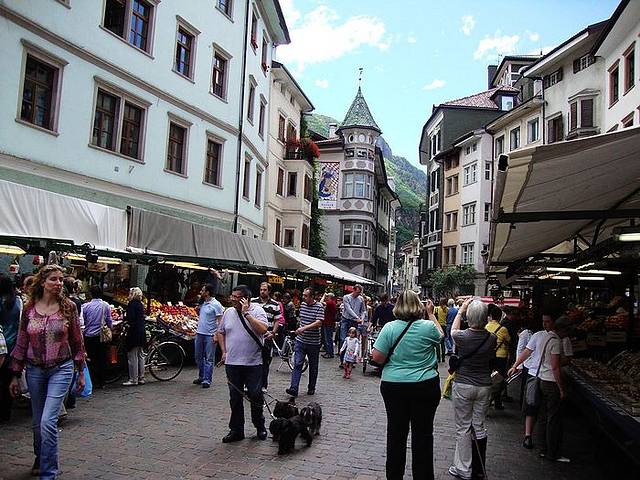 10点多,列车准时到达意大利境内的第一个车站——Brenner,令我失望的是,雨还时没有停,我甚至有些绝望的认为天气预报失信了。但是火车再往南穿过两个十几公里长的山洞以后,刹那间云开日出,阳光普照,山地的天气真是太神奇了!又过了几站,终于来到波尔查诺Bolzano。