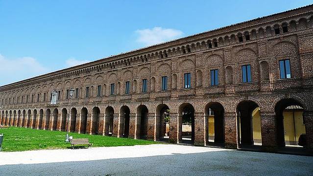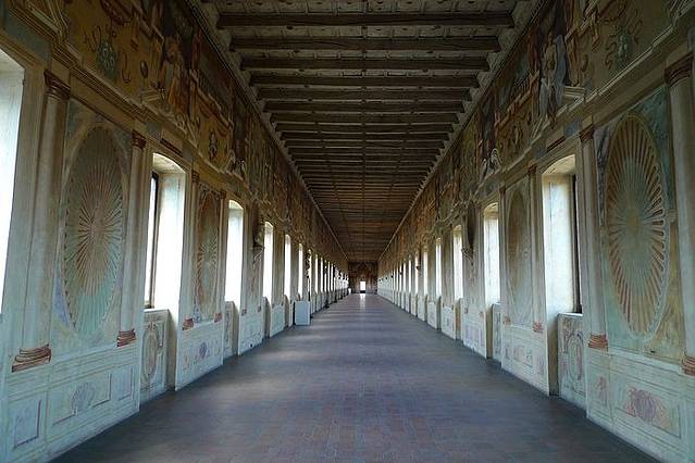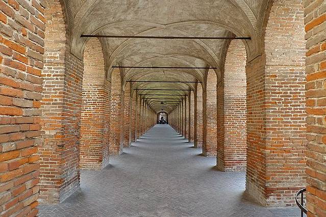 萨比奥内塔是一座单一时期的城镇,直角栅格式布局。这座长长的走廊通向伯爵宫。