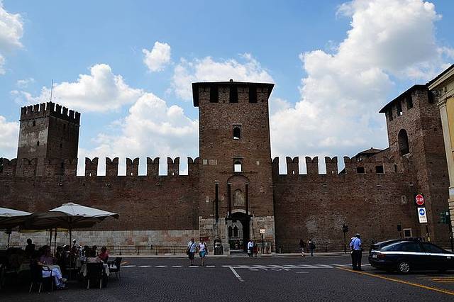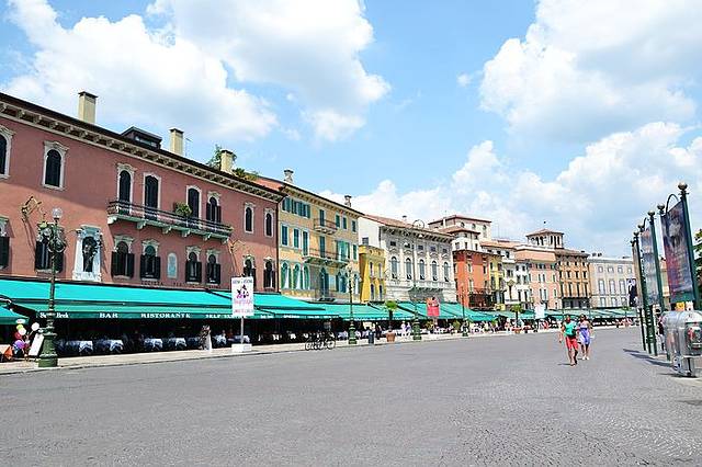从特伦托再往南就进入典型的意大利地盘——威尼托了。看过莎士比亚的著名悲剧《罗密欧与朱丽叶》的人,无不为男女主角缠绵悱恻的爱情所倾倒。如今这个故事发生的小城市,也成为著名的旅游胜地,每年吸引着各种人群纷至沓来。Bra广场是维罗纳最大的广场。