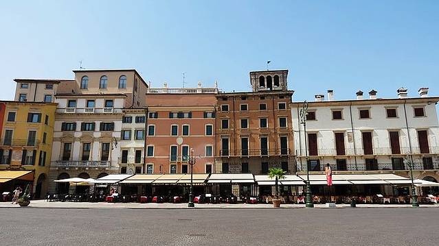 许多意大利城市都有一个主要的广场,节庆时作为主要活动场地,平日则是市民休闲集会的地点,就维琴察来说,领主广场就扮演着这样的角色。从广场的一端望去,其中一支大理石柱上的展翼石狮,诉说着维琴察曾被威尼斯共合国统治的历史,另一之石柱上则是保护此地的圣文森。