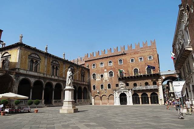 Scaligeri宫曾经是上文提到过的显赫一时的斯卡拉家族的主要居所,广场北端的建筑理事厅(Loggia del Consiglio)也附属于这里,曾经是市政厅。它被认为是维罗纳最优秀的文艺复兴风格建筑。广场中间有一座但丁雕像。