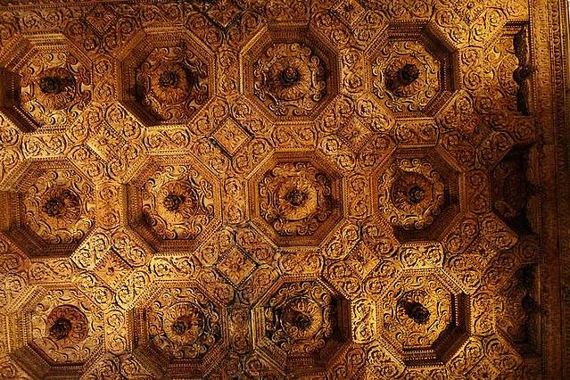 这个天花板由多个八角形组成,整齐划一而又不失特色。