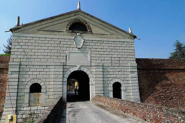 进了这座城门,就是小镇萨比奥内塔Sabbioneta了。萨比奥内塔是16世纪由维斯帕西雅诺·贡匝亚·科隆纳兴建的,他的初衷是建造一个理想的家园,一个可尽情享乐的地方。被大规模修复的星形城墙之内,保存着4座16世纪的纪念碑。