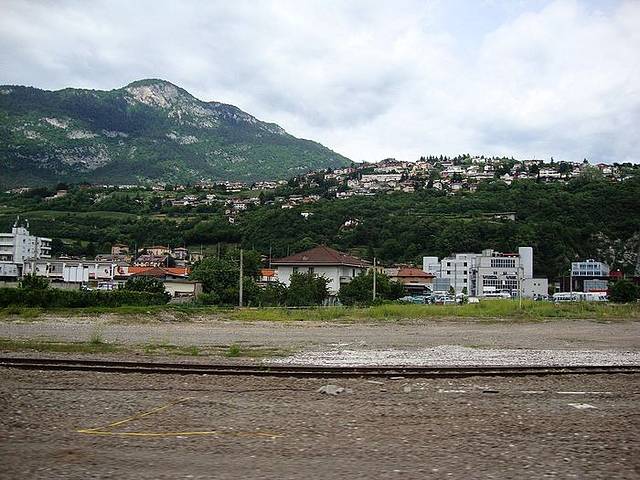 因斯布鲁克往南,铁路穿越阿尔卑斯山,山峰也越加险峻,可恨的是车窗打不开,隔着玻璃对焦总是不行,但不管怎样,还是能隐约看出山上没有完全熔化的积雪,现在已经是6月了啊。山脚下的一个个城镇在车窗外飞快地飘过,人类征服自然的旅途从来也没有停止过。蜿蜒曲折的展线严重制约了列车速度,Innsbruck南北几十公里的路段火车基本上以普通自行车的速度龟行,越是往南,地势起伏越大,有时可以看见铁路和公路之间夹着的落差几百米的深谷,混浊的河水咆哮而下,铁路仿佛一条天梯,可惜举了无数次镜头也没办法把这一幕记录下来。