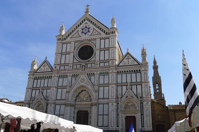 圣十字圣殿是方济各会在翡冷翠的主要教堂,罗马天主教的一座次级圣殿,坐落在主教座堂东南方大约800米的圣十字广场。在这座教堂中,安葬着许多位最杰出的意大利人,例如米开朗琪罗、伽利略、马基亚维利等人,因而被称为“意大利的先贤祠”。传说圣十字圣殿是由圣方济各本人亲自创建。1442年,教宗 犹金四世为这座教堂祝圣。这座建筑的设计反映了方济各会简朴的风格。平面布置为埃及式或T型十字架(圣方济各的一个标志)。