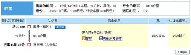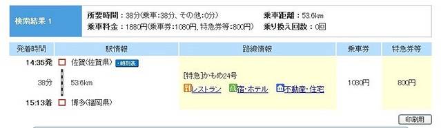 比如我第一天到日本佐贺后去博多,查询出的时刻表是这样的。