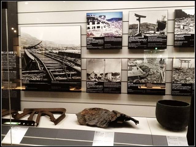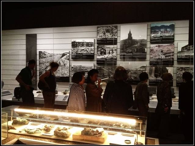 其中包括爆炸时停在11时2分的时钟、融化的玻璃瓶、市内教堂的残壁等,还有见证人的照片。