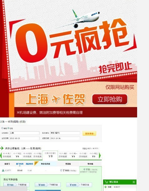最近春秋搞活动,上海往返佐贺,0元机票,真便宜啊。