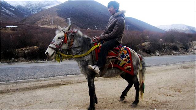 路上遇到骑马的小伙子,好悠闲的在马路上晃。别看他照片里这么淡定,其实很紧张。