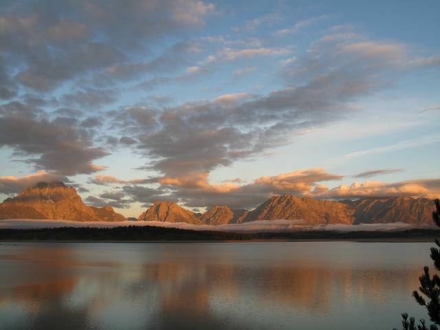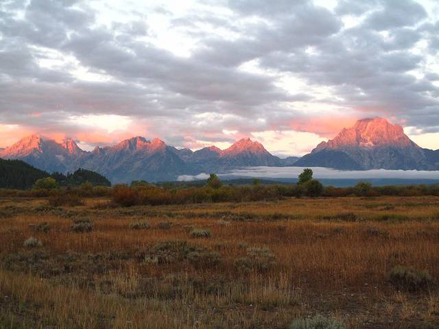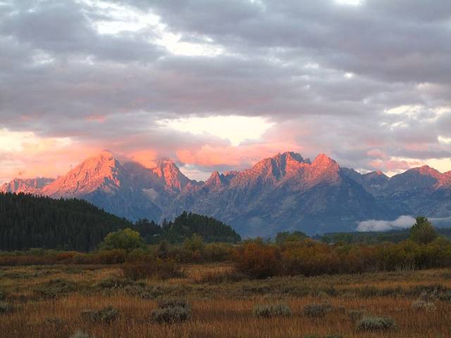 caption: 被红霞映红的山顶尖无比妖娆,真是庆幸早起偶遇大提顿最美的一幕啊。