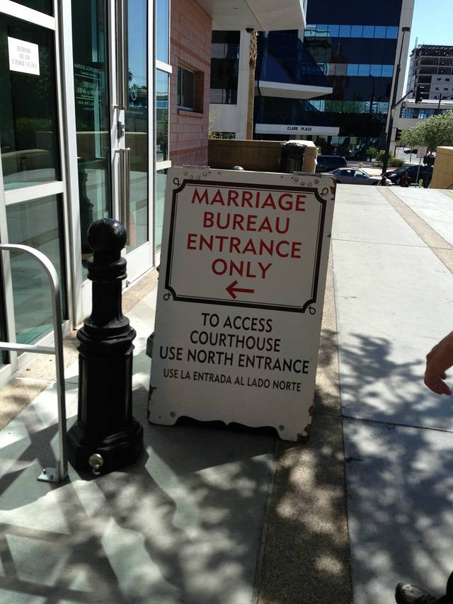 美国政府发的license只是个结婚资格,需在一年内找人公证后才具有法律效力。las vegas有很多教堂可以提供公证服务,我们选的Chapel Of The Flowers是一家精致的小教堂,遗憾的是当我们去到那,适合的时间都被订满了,心里有点失落,但不想耽误逛街吃自助餐的时间,便没去看其他教堂,拉着陆先森直接去outlet了。当天晚上,我回酒店倒头睡着了,陆先森自己跑下去咨询了一下我们所住的酒店The Paris,也有婚礼服务,700刀起。太贵,被我一票否决。于是,私奔结婚失败。总结来说就是,比起逛街吃自助餐,结婚的吸引力还是小了点 要提醒妹纸们的是,就算那边有无数的教堂,倘若想按自己的计划行事,还是提前预订吧。领证这事,我朝是最方便的了,什么结婚之城,根本跟我们没法比,哈哈哈。