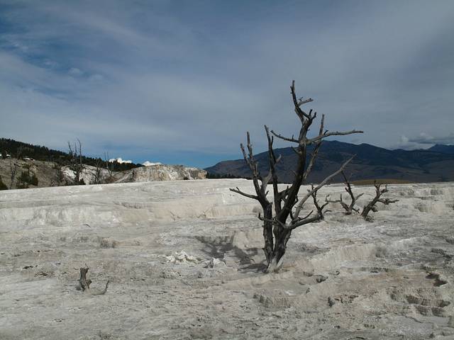 caption: 下面都是在mammoth 拍的。這些hot spring,有些是死的,有些是活的,但死的那些,隨時是有可能复活的,绕不。。。