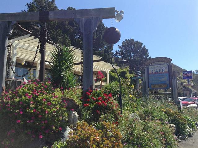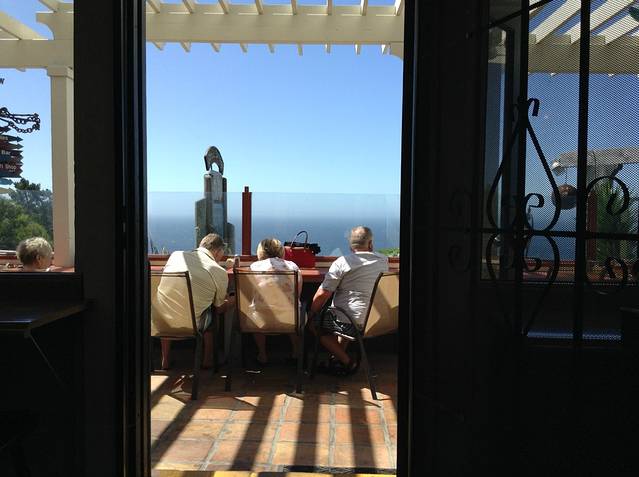 本想在著名的大苏尔吃饭,但我们的车快没油了,没心思,忐忑的一路向前开了一小段,看到了油站,刚好有个餐厅,于是吃饭。东西不好吃,view不比大苏尔差太多。