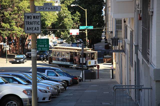 事实上,整个湾区很大,但旧金山却没多大,游客一般乘坐cable car游玩即可。市区高高低低的地形使得cable car成为19世纪当地最重要的大众交通工具,但现在cable car的车费较贵,基本都是游客乘坐了。这点香港则不一样,叮叮车车费便宜依然是港岛大众日常使用的交通工具。