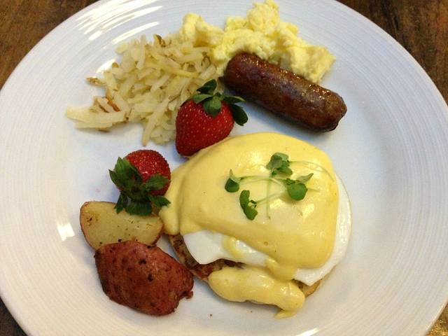 caption:随便挑的一家餐厅,味道不错,两个人的早餐大概花了30多刀吧。