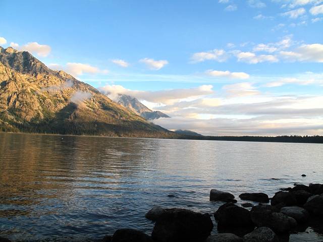 caption: 这一天的jenny lake也貌美了很多,蓝色白云和阳光是大自然最好的化妆品啊