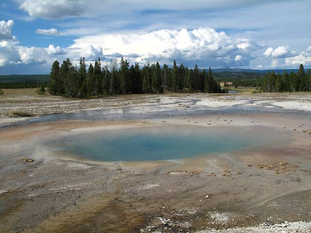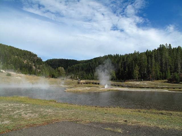 第一个景点,west thumb,yellowstone lake旁边,算是初见冒着热气的坑,沸腾的泉水吧,后来看得太多也不觉稀奇了,还有更震撼的。而且,我老觉得写游记写容易,贴图难啊,感觉每幅图都不可少,又觉得每幅图都无法表达我当时看到的。我和陆先森都不擅于摄影,真正的美景,还是去亲身体验用肉眼看吧,360度三维立体的效果,再好的相机也容纳不下,我小小的游记也算是抛砖引玉勾引一下大家去亲身体验的冲动吧