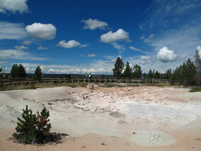 来到下8左面,才是热泉真正集中的地方,黄石比较著名的景点基本集中在这。咕噜噜冒泡的泥浆,呼呼冒烟的水池,开几分钟就见一群,浓浓的硫磺味真是受不了。可能因为见多了,开始摆起一副见多识广见怪不怪姿态得瑟起来,哈哈,若是小泉都没见过直接上这来,估计也会震撼到吧,所以行程安排把最出名的摆在最后也不见得是好事,会有一种不过如此的感觉,但若是看到所谓最美的再去看那些不知名的,说不定还觉得,哇!也不错耶!