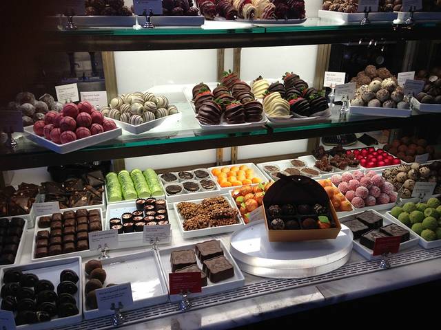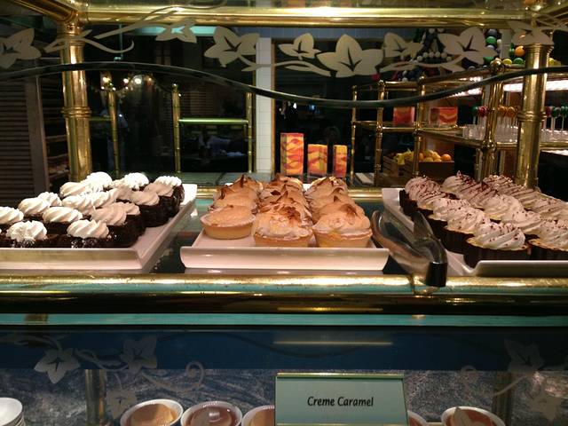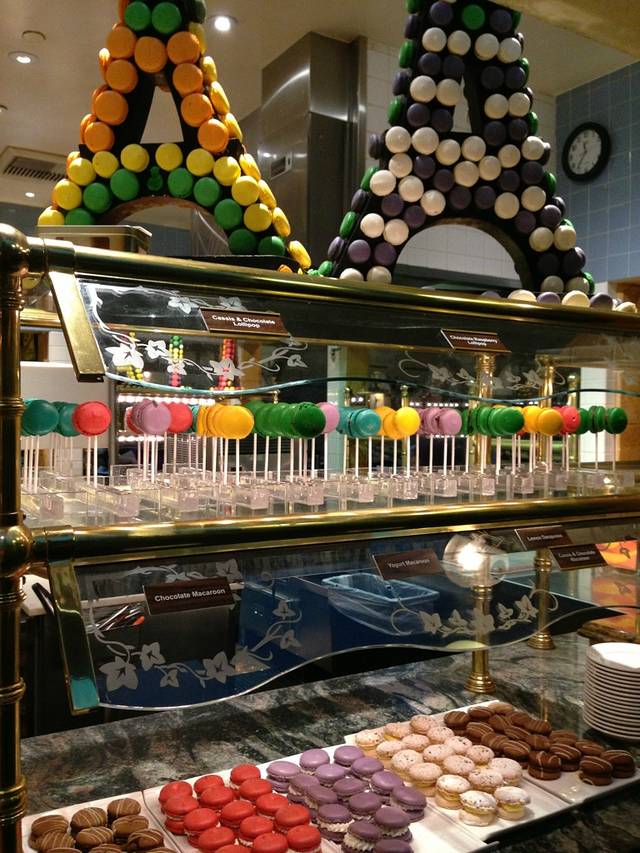 las vegas的自助餐很出名,我们挑了两家吃,wynn吃晚餐,the paris吃的早午餐。做攻略时看到说wynn的更出名一点,于是第一天晚上就去了,六点多过去,不用排队,没什么特别的感觉,就是吃了很多蟹棒,其他的没印象了。The paris本来没有特别说一定要吃,但是每次经过都看到好多人排队,最后一天便凑热闹也去排队了。10:30过后11点不到的时候进场,还是早餐价,但吃着吃着就上午饭了,不过也吃不下了,感觉早餐的东西就足够好吃足够多了。不好意思乱拍,吃饱喝足,在陆先森的率领下,跑去偷拍了几张甜点,看见两个老太太拿了好多漂亮的马卡龙、小蛋糕在那摆弄。。。。。。。