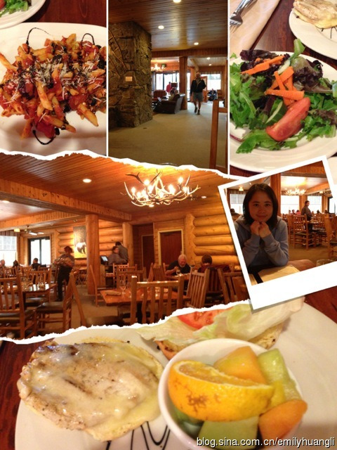 大提顿和黄石连着,但就这短短十几分钟的路程,我们遇上了在美唯一一次塞车,被堵在距离门口不足五分钟的路上,据警察说,因为前方有摩托车撞到了动物,让我们耐心等待。没有耐心的我等了半小时就不耐烦了,抛下陆先森下车遛达,本来说去看看有木有洗手间,结果被我觅到一家餐厅,赶紧喊了陆森吃饭,果然吃饱喝足,路就通了。餐厅装修很别致,东西嘛,就实在不好吃。黄石几天吃的比较差,没办法,时间不多,里面的餐厅选择也不多,我自带了泡面和乌江榨菜,都是在黄石这几天吃掉的,很满足,强烈推荐自带。出了黄石,回到大城市,那美食还是很多了,以后我会说到。