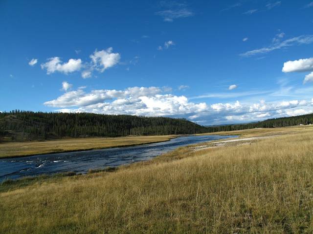 caption: 虽是初秋,树木依旧翠绿,但草已经发黄了。九月初游黄石也许不是最好的时节,但是避开暑假之外最好的时节了。不然便是6月。