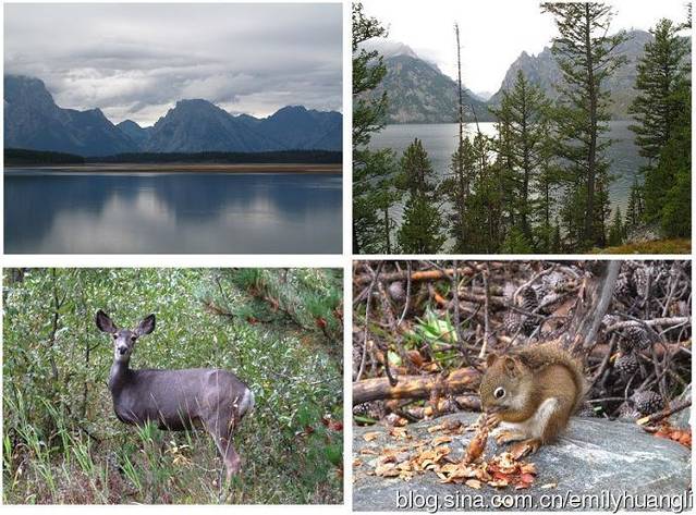 因为天气原因,这一天的大提顿没有给我们太大的惊喜,云里雾里的提顿山虽也秀丽,但总有种藏着掖着的感觉,略显含蓄,没有什么特别之处。而Jenny lake & Jackson lake映着灰蒙蒙的天,也有些死气沉沉心灰意冷的感觉,幸好湖边还有些树木,点点绿意点缀出一丝生气。不过因为新奇,这一天的大提天,各种小动物给我们带来了无限的乐趣。