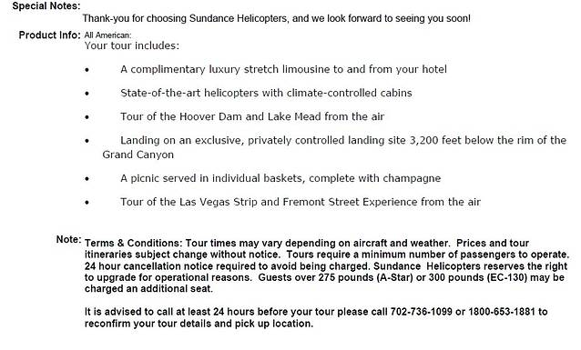 具体的游览安排 from Reservation Confirmation。 花费299刀,不含小费。