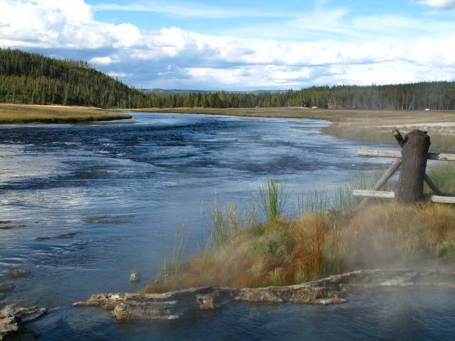 黄石上8字右面风景相对沉闷但开阔有气势,回程我们沿上8字左边往著名的old faith去,沿途风景秀丽多了,还有很多不知名的小热泉。