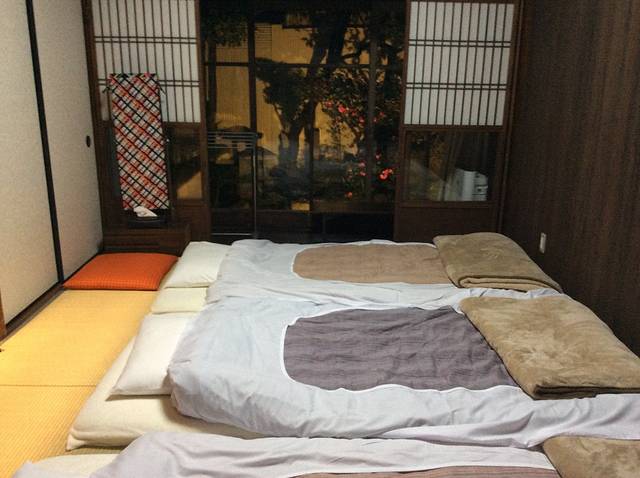 早上起来第一件事就是继续换地方,实在不想离开高濑川啊,我是真爱那个地方,第三天住的地方是三条宿,第一天的前台小哥是非常严肃的日本人(后面还有漂亮的台湾妹子和很高很帅的日本小哥),做事认真的让我们感觉压力好大,环境不错,干净,就是被子啥的都需要自己铺……