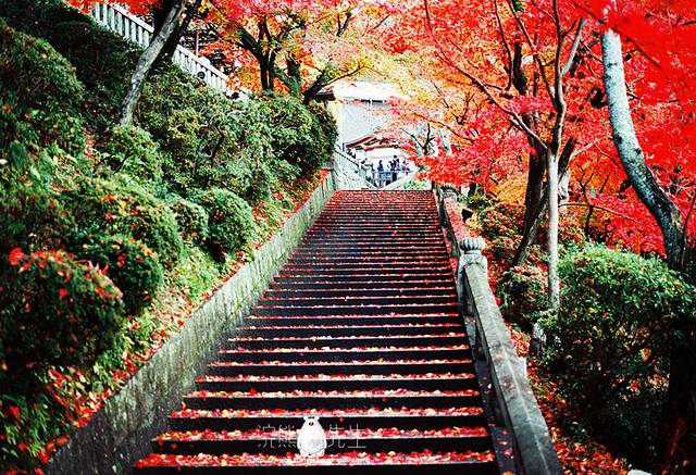 从平等院出来沿着宇治川的另一边走(宇治川感觉不是很好看,但是旁边的小路我喜欢),就是兴圣寺,(要门票所以没进去)兴圣寺前有条红叶大道,很漂亮啊,在外面拍拍照片就好了。