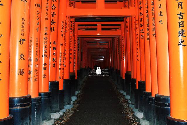 到了千本鸟居的时候,天已经黑了,所以没拍什么照片,千本鸟居比我想象得要小,巨……巨……老长,漂亮是真漂亮,就是太长了,感觉走不到尽头。天已经很暗了,就拍了这么一张~~