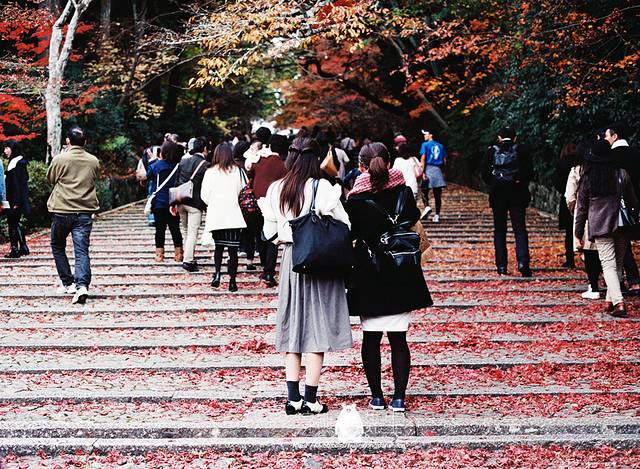 【日本印象】:感觉日本人非常注重形象,即使是年龄很大的老年人,穿衣都很得体,奶奶阿姨都会化妆,在公交车上看见个老太太,似乎颈椎有毛病,上半身僵直,但是仔细看她的衣服颜色搭配的非常好~~而且老年人很多,即使是看上去80,90的老年人也会去爬山赏红叶。