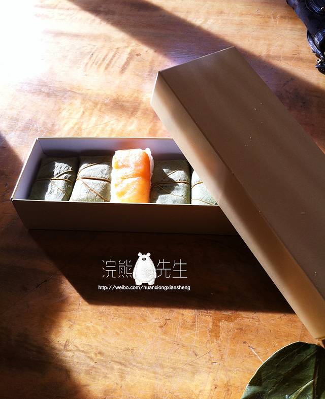 柿叶寿司,上面包着一层薄薄的鱼肉?