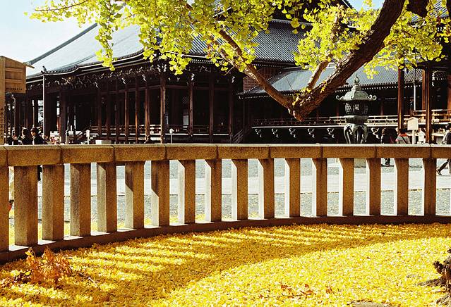 西本愿寺里面的银杏还是很旺盛的,西本愿寺里那颗巨大的璀璨的银杏树真是太……黄了……太好看~~