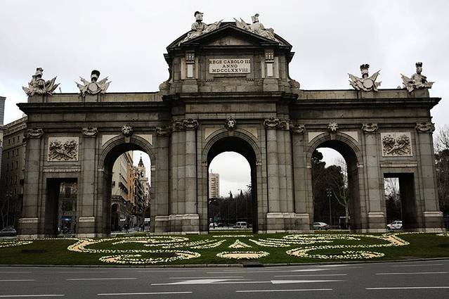 阿尔卡拉门是马德里仅存的几个古老城门之一,建于1788年,由建筑师萨巴蒂尼设计,用以纪念“马德里最杰出的市长”卡洛斯三世。