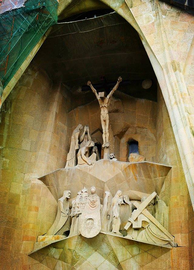 圣家堂分为三组,描绘耶稣诞生、受难、死亡,和上帝的荣耀;