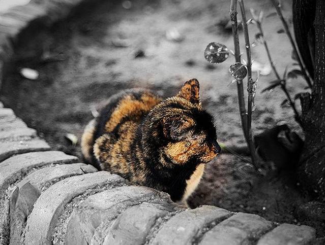 有一间小饭馆每晚夜上浓妆,昏黄的光线都在门面上投下暗淡的光影,神秘迷离如同时光隧道,仿佛一步踏入,就能进入一个异域时空。在门口摆放的菜单边缘处印着一幅四只黑猫的老海报,许多客人在门口翻看着菜单,把狭窄小街挤得水泄不通,