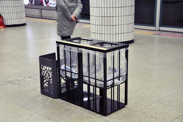 对了,忘了上面这个东东了,这是垃圾箱,地铁站都是这种布着透明塑料袋的垃圾箱,非常干净,不像偶们的垃圾箱,里里外外都脏。还有感触很深的是首尔的公共厕所真的好干净好干净,上厕所真正变成一种享受,我想这就是经济发达的标志之一吧,偶们还需在这方面努力再努力。