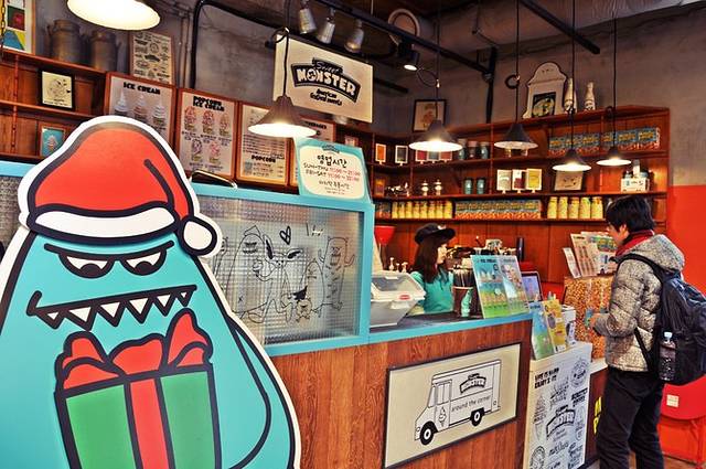 在一家嘻哈服饰店居然遇上了著名的爆米花冰激凌SWEET MONSTER,之前在美食节目看到这个有趣的东东,果断列入美食清单中,正好在这里偶遇。