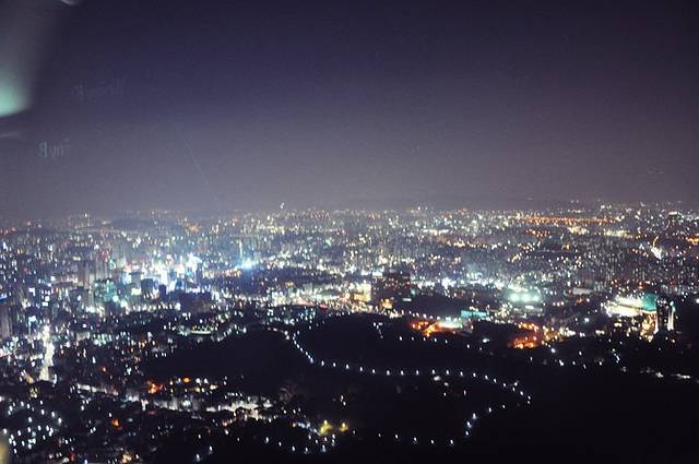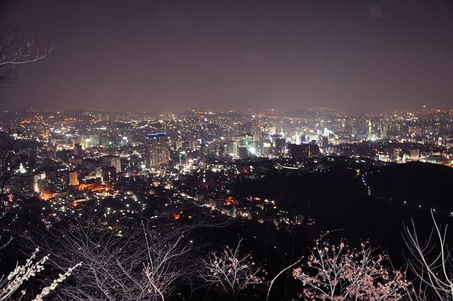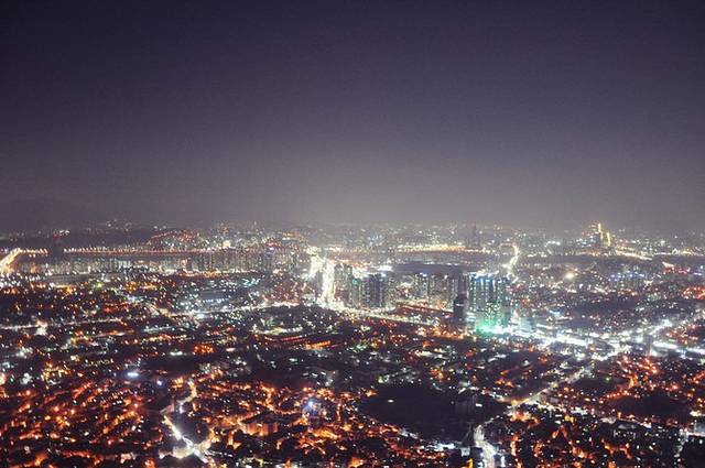 从塔下眺望星星点点的灯光把首尔映衬得很漂亮。